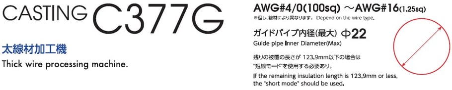 C377G drives all eight rollers with independent motors. Since all four pairs of rollers open on both sides, the path line of the wire is always constant regardless of the thickness of the wire. By opening and closing the roller in the vertical / horizontal direction, damage to the processed wire is minimized, and stable cutting and stripping are always possible.